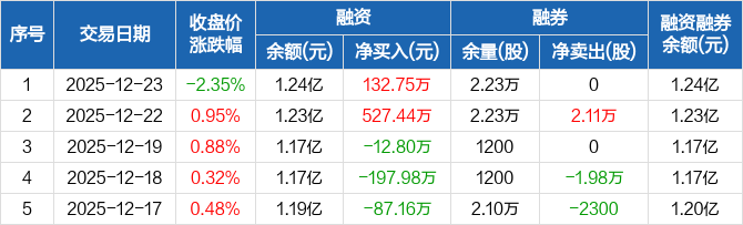 亨迪药业:融资净买入132.75万元,融资余额1.24亿元(12-23)