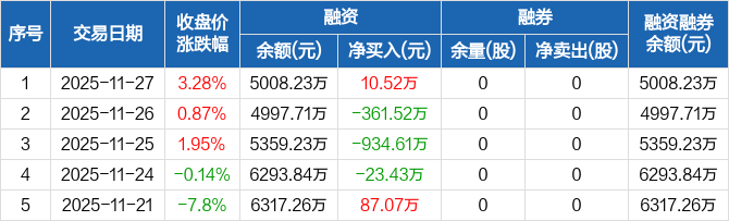 联盛化学:融资净买入10.52万元,融资余额5008.23万元(11-27)
