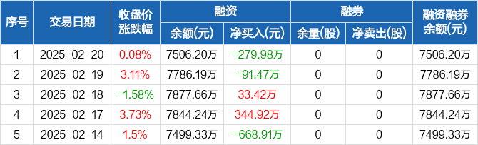 观想科技:融资净偿还279.98万元,融资余额7506.2万元(02-20)