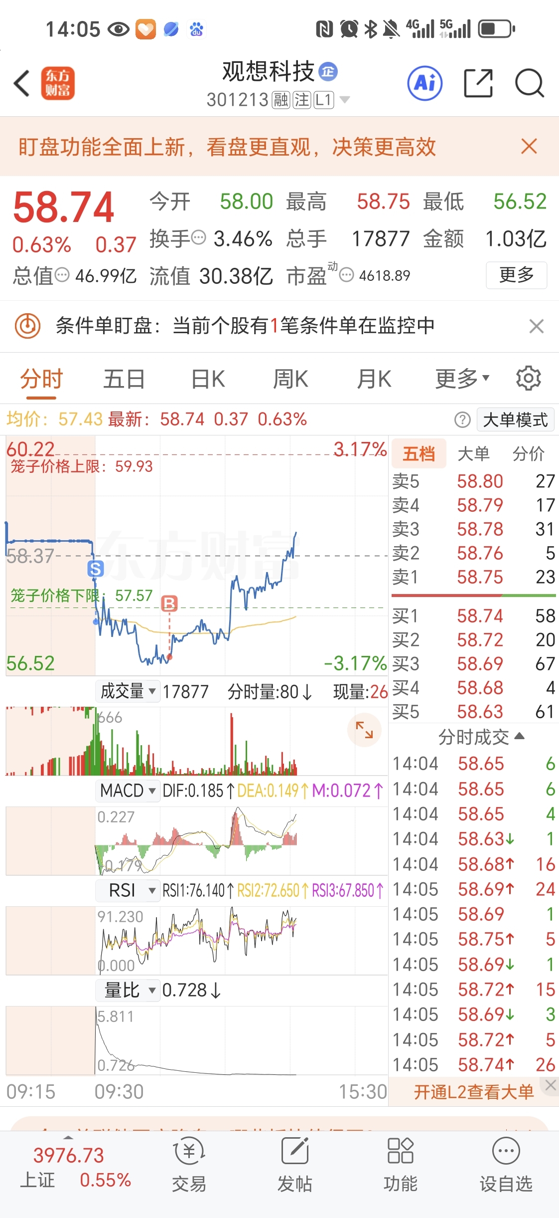 $观想科技(SZ301213)$ 唉!无语得很!!!!明明支撑有效,卖5000股,买200股