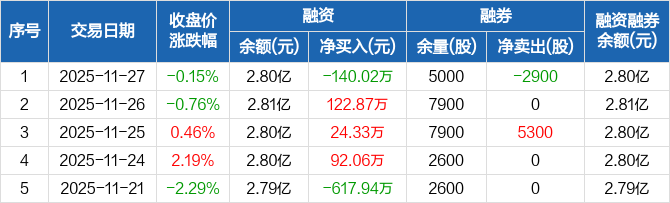 中汽股份:融资净偿还140.02万元,融资余额2.8亿元(11-27)