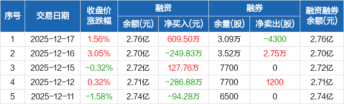 中汽股份:融资净买入609.5万元,融资余额2.76亿元(12-17)
