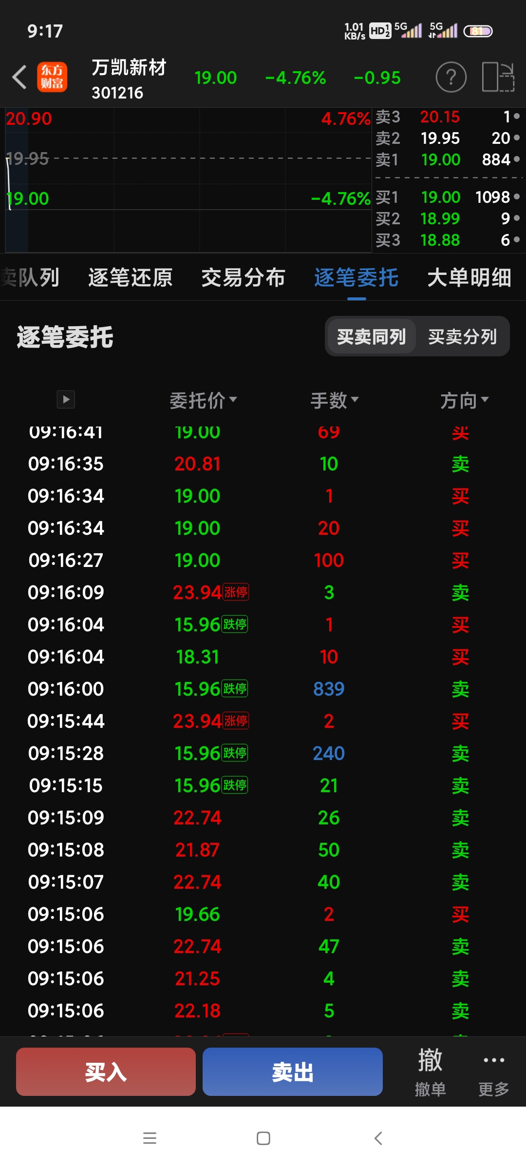 $万凯新材(SZ301216)$ 每天竞价都有一笔839手的挂跌停