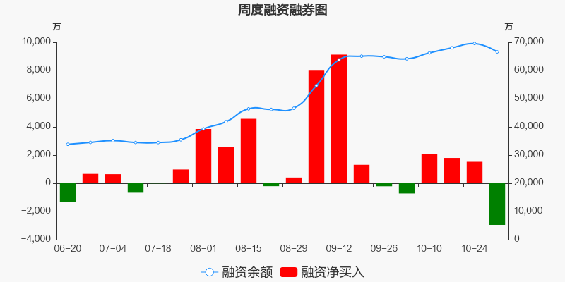 万凯新材本周(2025/10/27-2025/10/31)累计涨幅达2.92%,截至10月31日最新股价报收20.80元。从增量上来看,10月27日至10月30日融资买入交易规模1.9亿元,融资偿还规模2.2亿元,期内融资净偿还2949.56万元。从存量上来看,截止11月2日,万凯新材融资融券余额6.67亿元,其中融资余额规模6.66亿元,融券余额规模55.11万元。