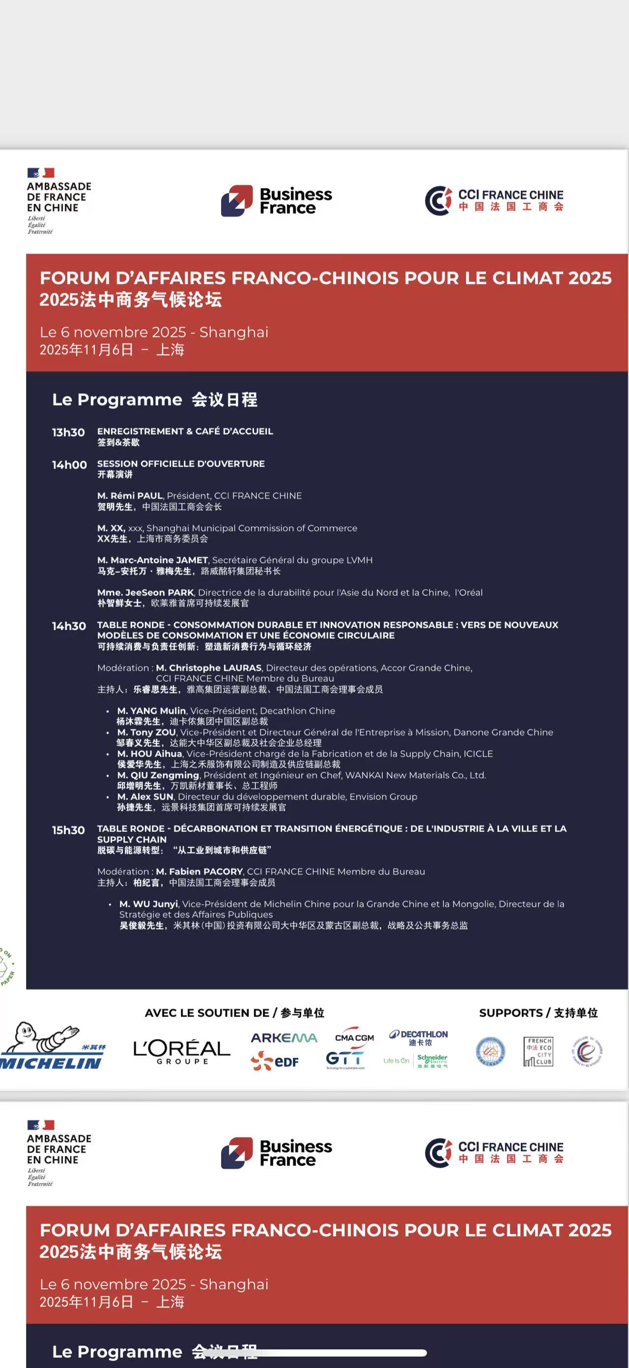 万凯受法国大使馆邀请参加中法气候论坛,LV集团秘书长,米其林的全球CFO, 开云集团全球CEO,欧莱雅首席发展官都会参加。圆桌讨论涉及可持续消费与负责任创新,作为唯一受邀参加的材料类企业,万凯希望持续打造全球循环材料的品牌