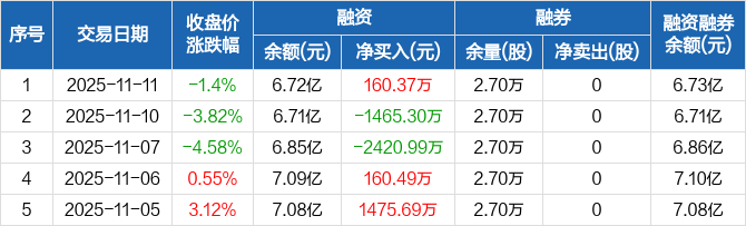 万凯新材:融资净买入160.37万元,融资余额6.72亿元(11-11)