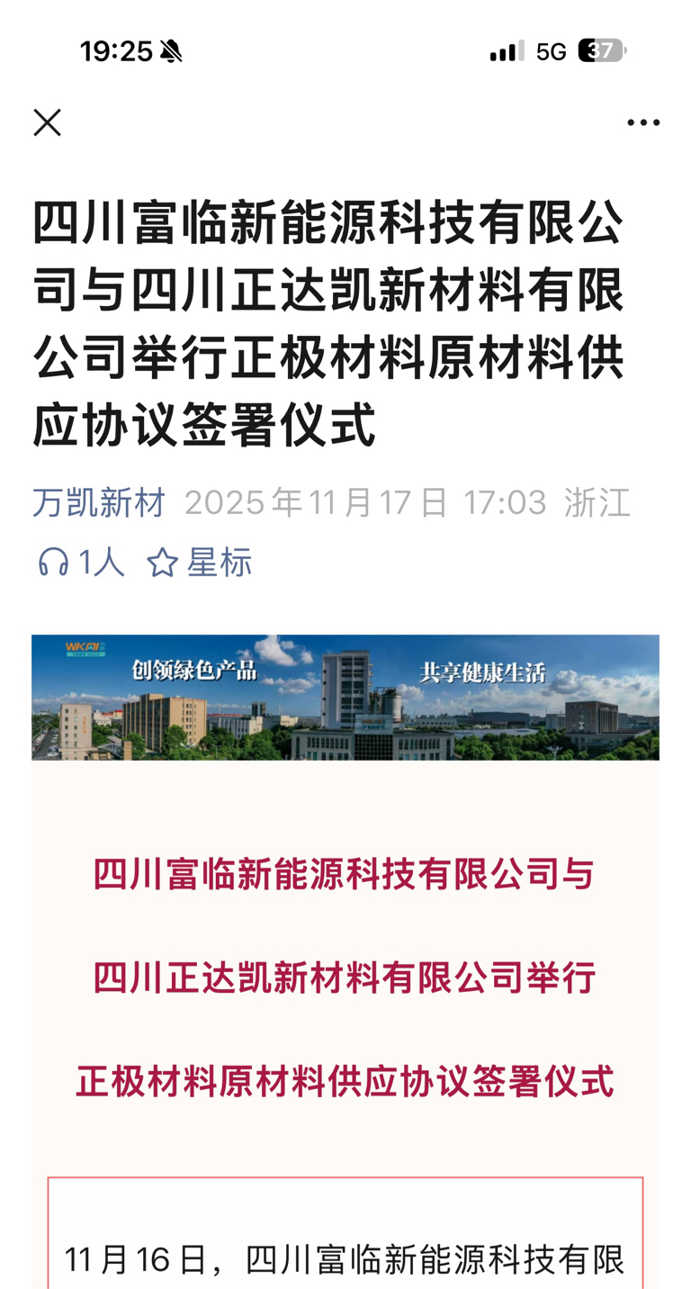 $万凯新材(SZ301216)$ 西部最大的草酸产能投产!富临签订采购协议,磷酸铁锂前驱体!
