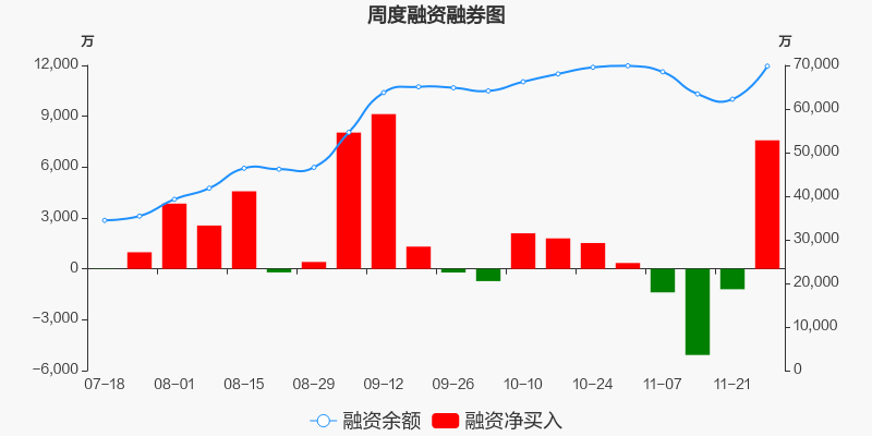 万凯新材本周(2025/11/24-2025/11/28)累计涨幅达17.08%,截至11月28日最新股价报收18.58元。从增量上来看,11月24日至11月27日融资买入交易规模1.93亿元,融资偿还规模1.18亿元,期内融资净买入7581.81万元。从存量上来看,截止11月30日,万凯新材融资融券余额6.99亿元,其中融资余额规模6.98亿元,融券余额规模43.74万元。