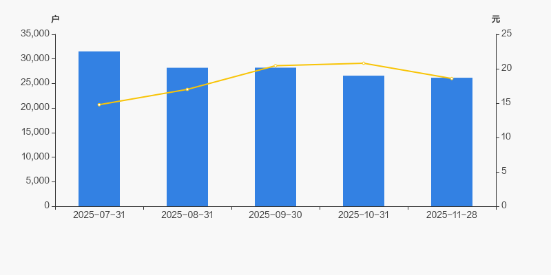 2025年7月31日至今,公司股东户数显著下降,区间跌幅为17.03%。2025年7月31日至2025年11月28日区间股价上涨25.80%。