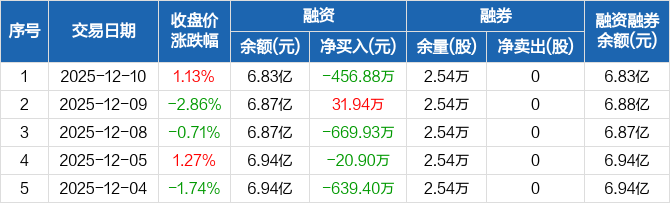 万凯新材:融资净偿还456.88万元,融资余额6.83亿元(12-10)