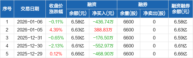 万凯新材:融资净偿还436.74万元,融资余额6.58亿元(01-06)
