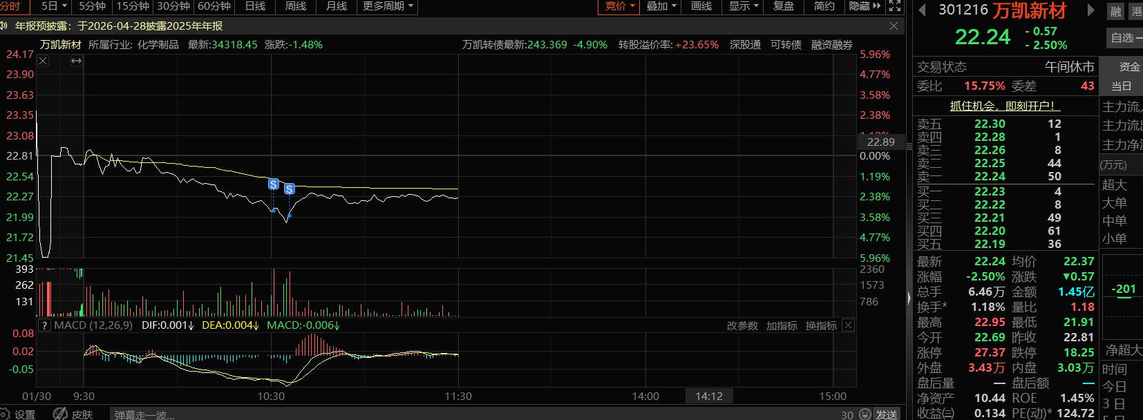 万凯未来潜力很大,目前趋势已坏,选择暂时减仓离开,留下的发财