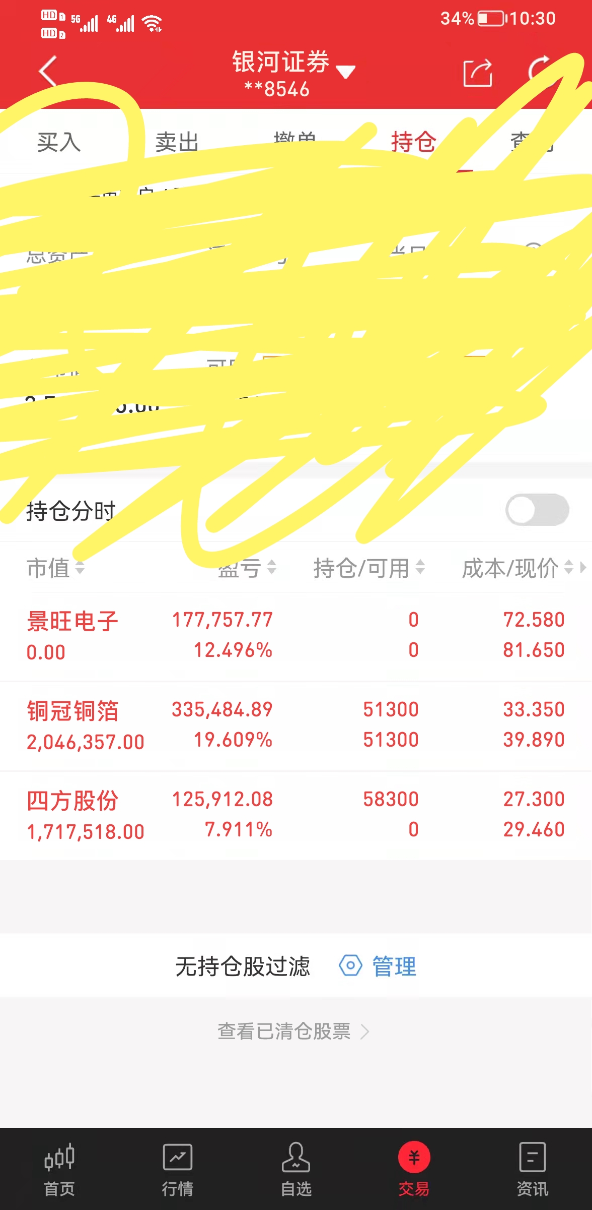 大家上午好,昨天下午介入的铜冠铜箔今日继续持有,还不错现已有19cm,上午给景旺