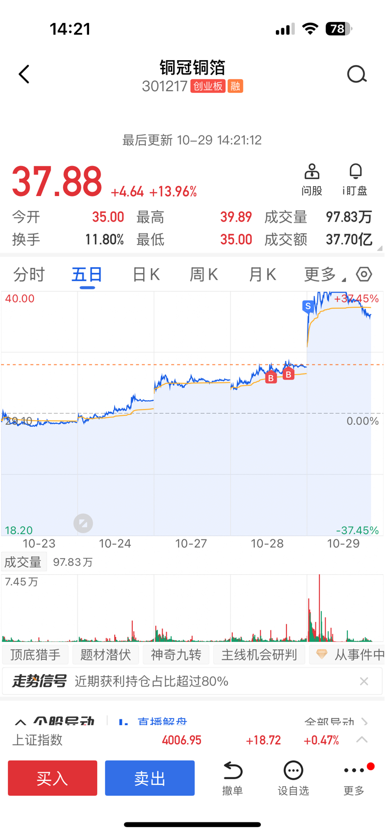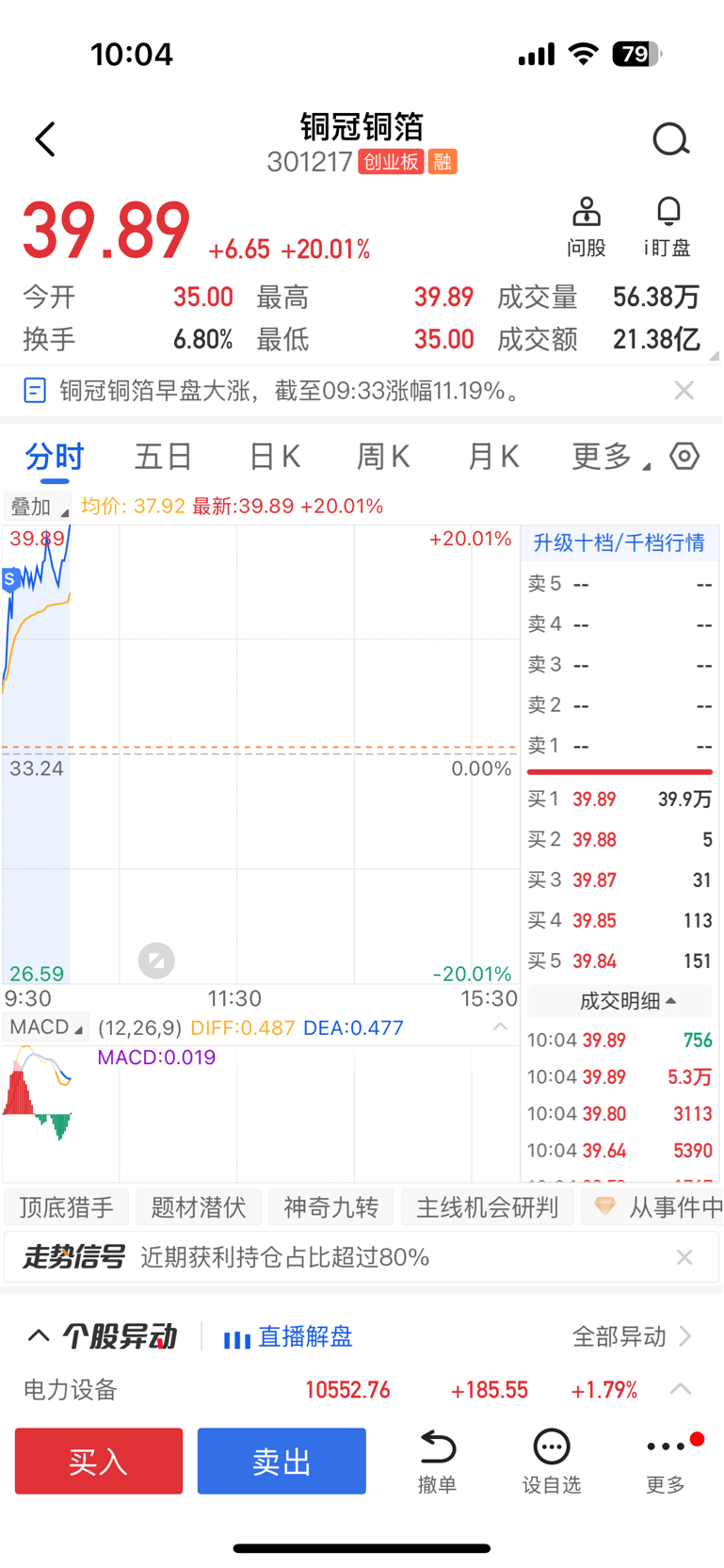 去力量亏了20个,还好昨天忍痛割爱了,果断进来铜冠铜箔,早上↑回来了,这钱真难赚