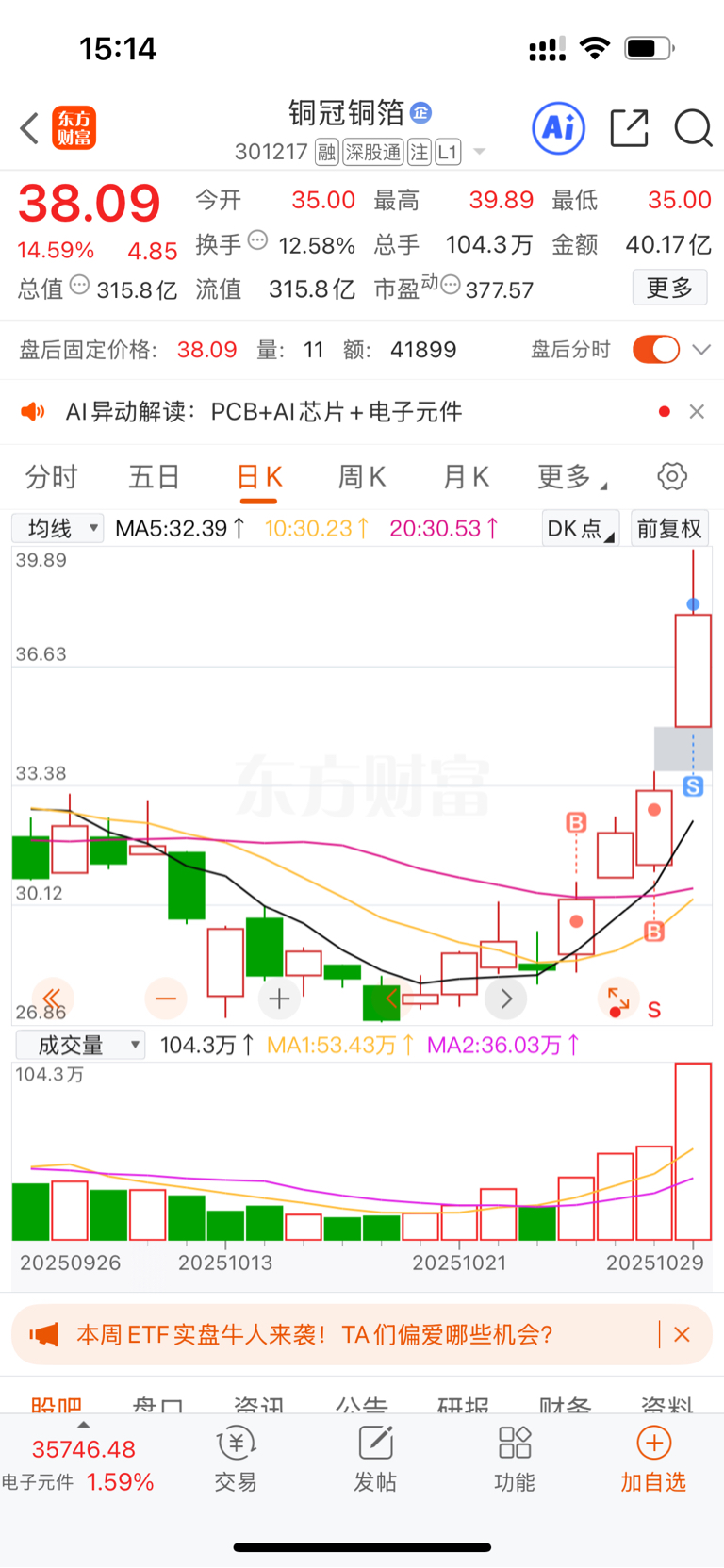 $铜冠铜箔(SZ301217)$ 盘整两天再来