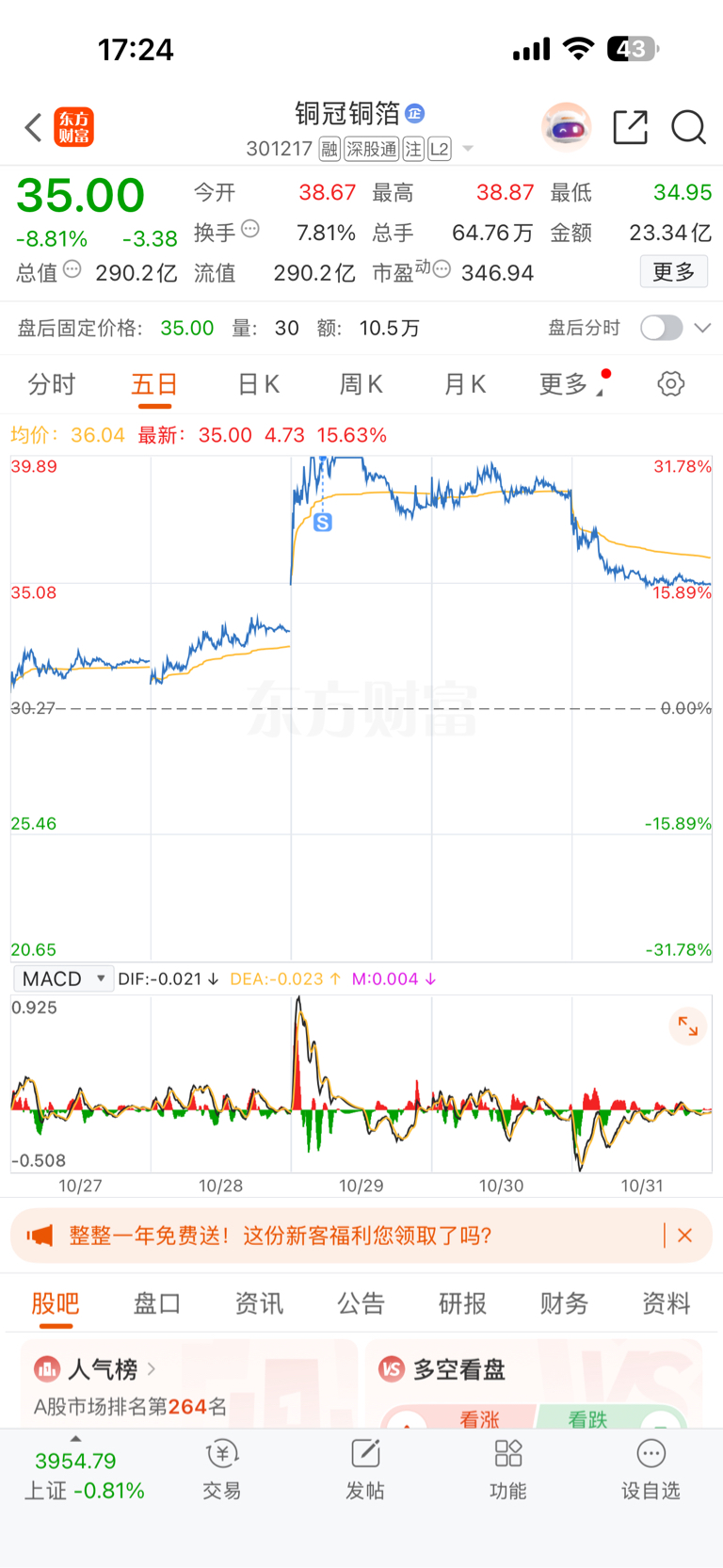 $铜冠铜箔(SZ301217)$  还好跑得快