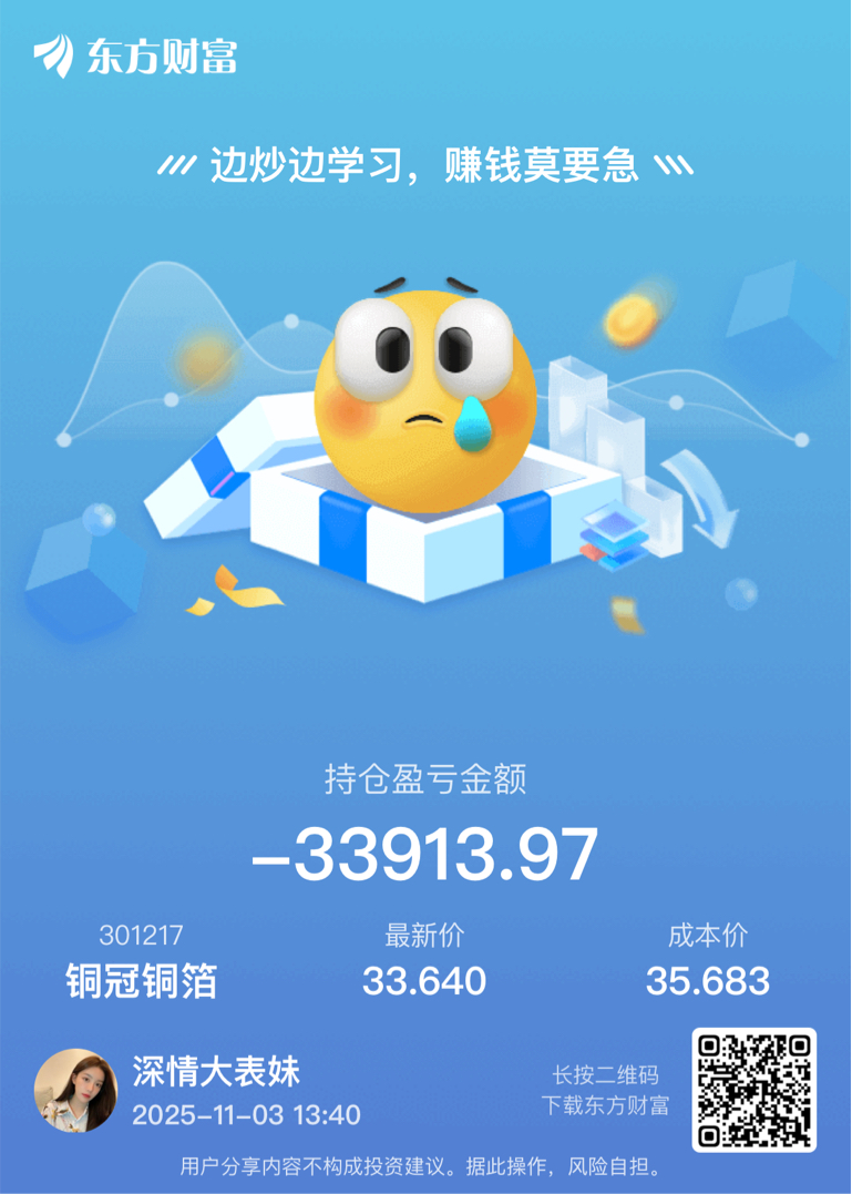 $铜冠铜箔(SZ301217)$ 走了,损失惨重