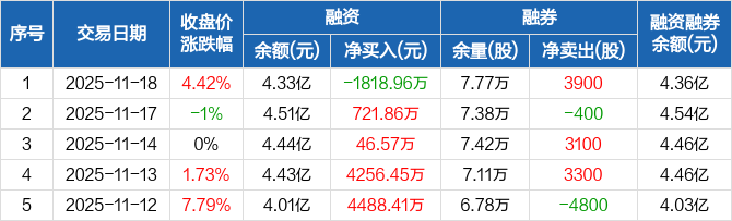 铜冠铜箔:融资净偿还1818.96万元,融资余额4.33亿元(11-18)