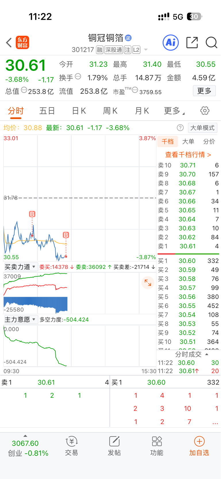$铜冠铜箔(SZ301217)$ 庄看到了买,继续买入,哪些在上面套着,是不是很想骂我
