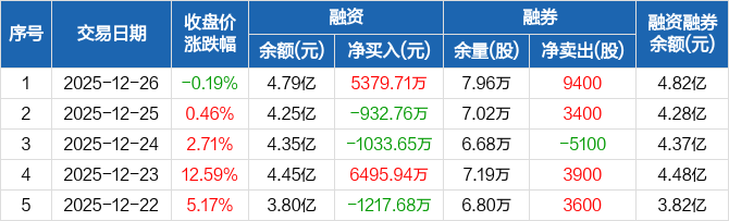 铜冠铜箔:融资净买入5379.71万元,融资余额4.79亿元(12-26)