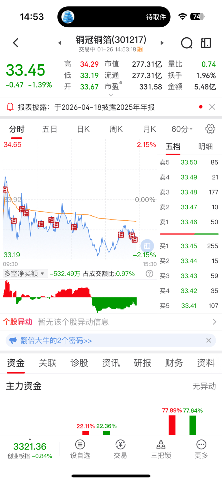 $铜冠铜箔(SZ301217)$ 有进村了?这么扫也不涨