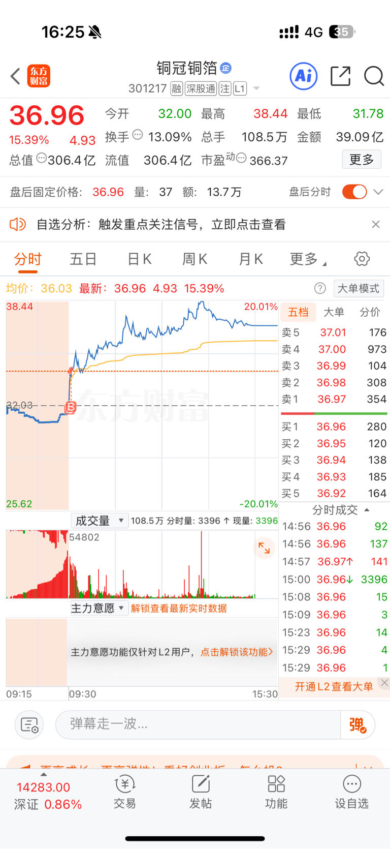 $铜冠铜箔(SZ301217)$ 昨天追高 今天赚20个点