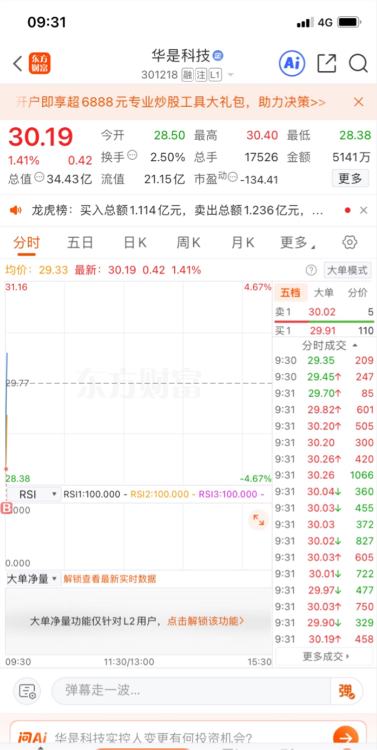 开盘低吸介入$华是科技(SZ301218)$ #强势机会# #实盘记录# #投资干货# #投资随笔#