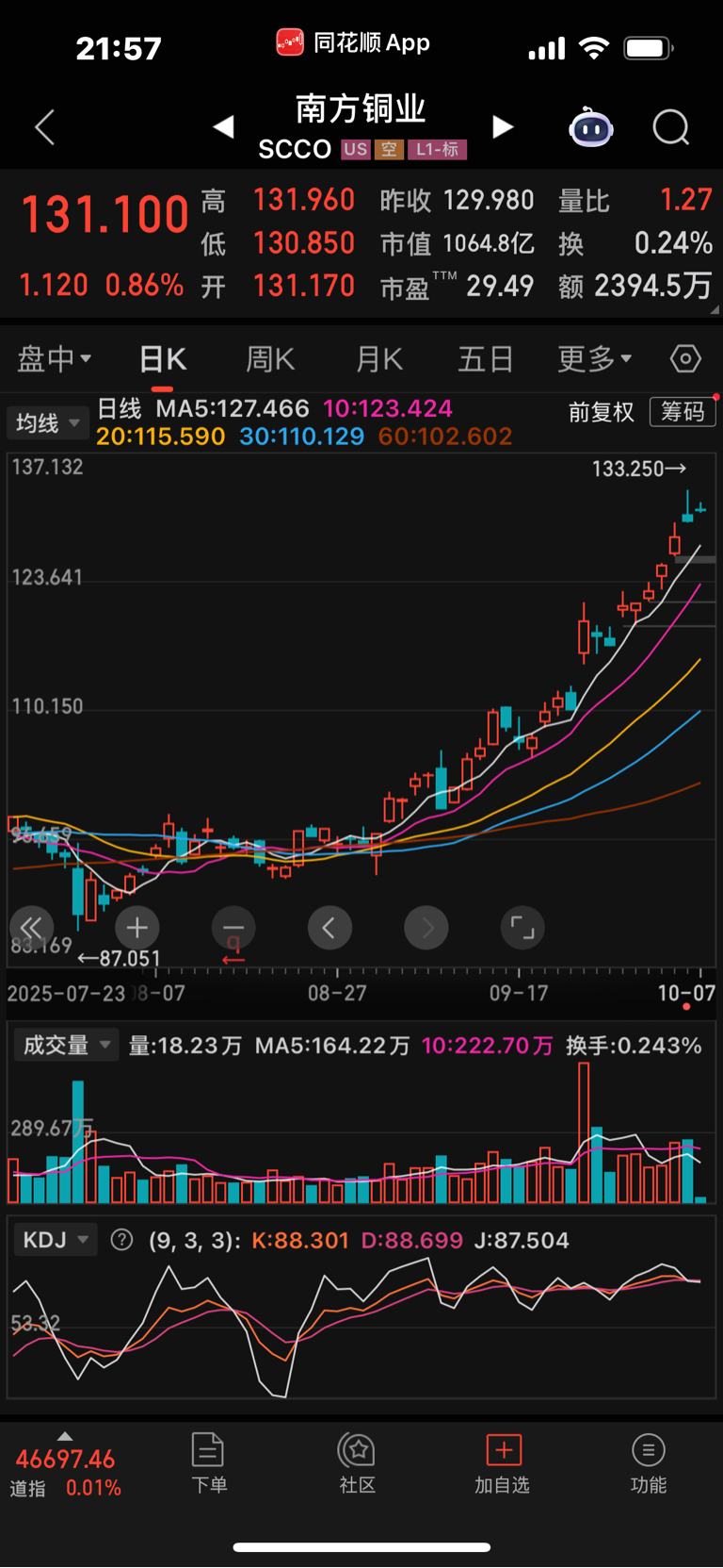 美股南方铜业天天新高!明天港股的有色金属持续上攻,后天A股有色板块热火朝天!