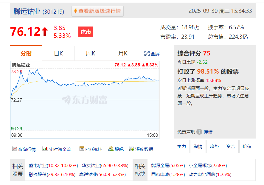 @东方财富网$腾远钴业次日上涨概率45.88%!!看“今日表现-2.52”就知道