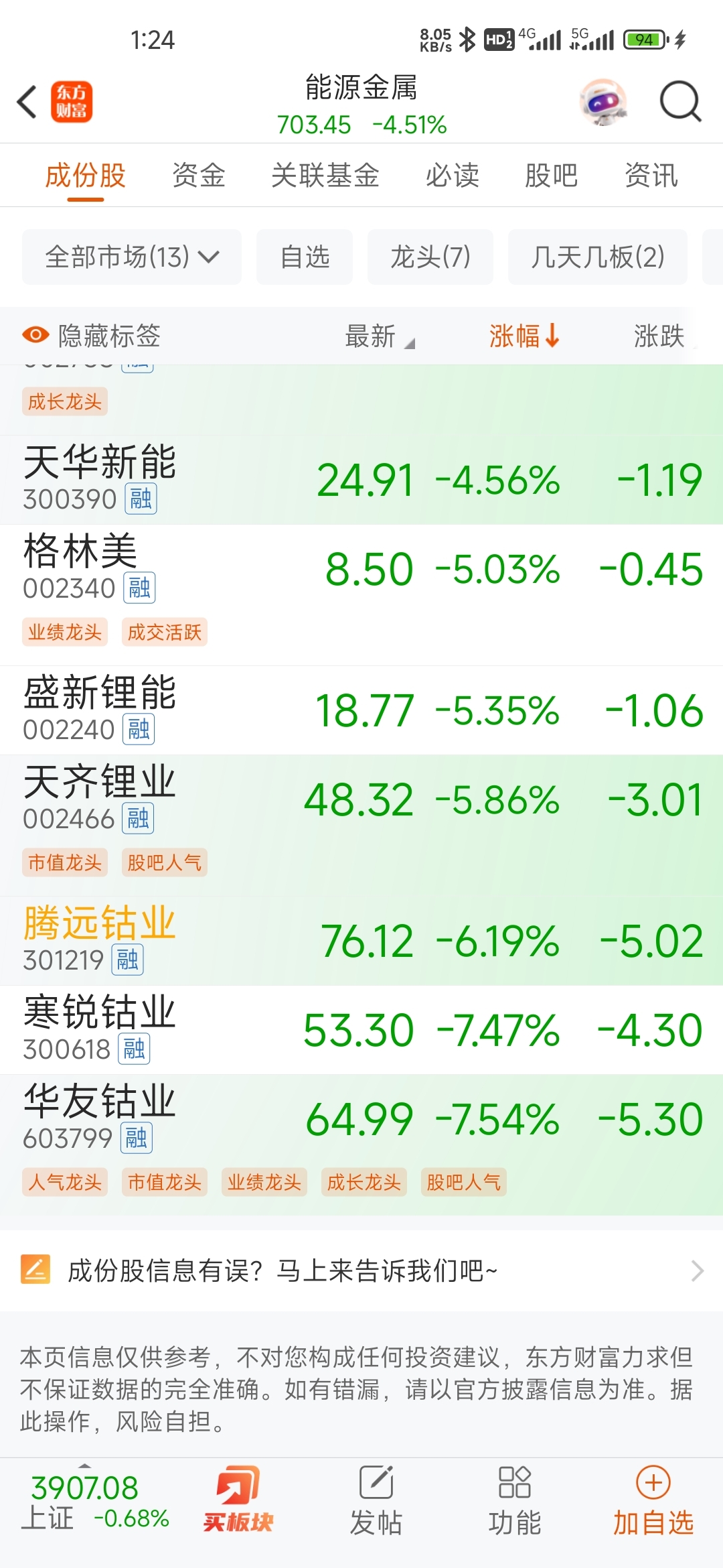 $腾远钴业(SZ301219)$ 缩量下跌还得跌~
