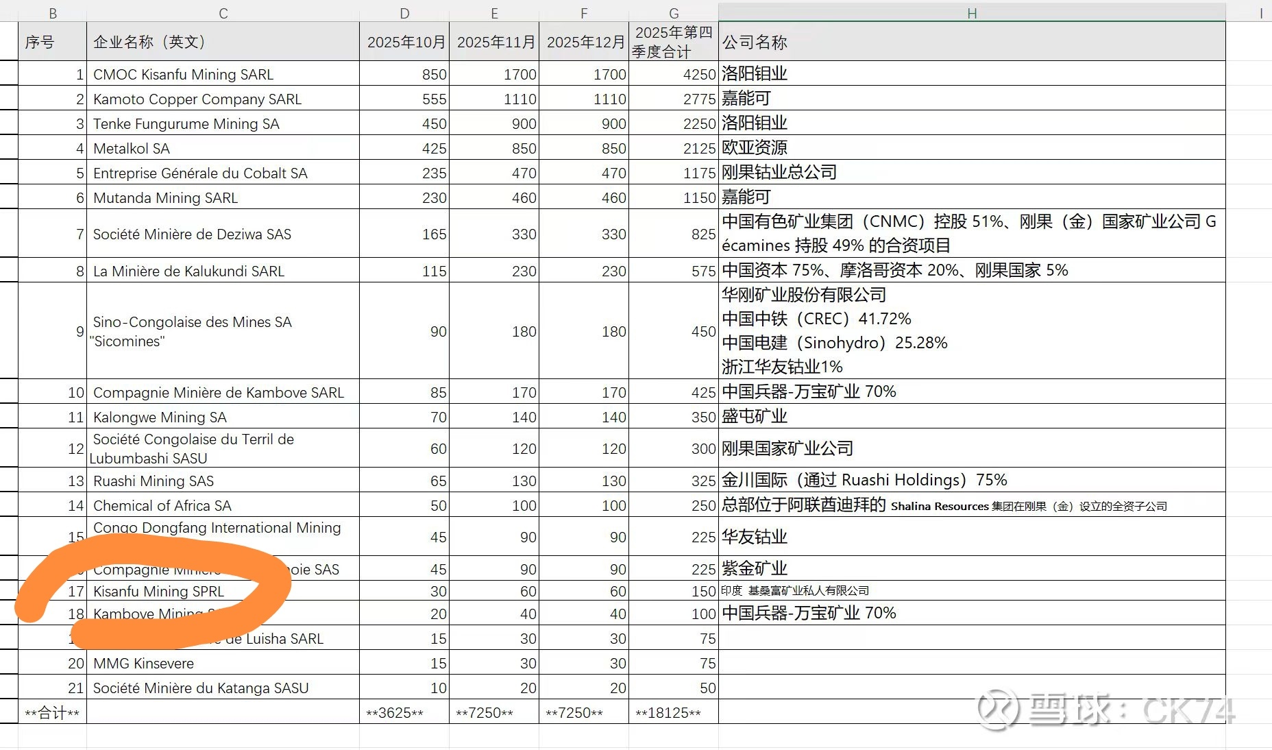 $腾远钴业(SZ301219)$ 腾远也有配额,腾远钴业通过其在刚果(金)的子公司(持股 100%)持有采矿权及探矿权。公司通过刚果(金)子公司控股 Kisanfu 铜钴矿 10% 的权益,该矿钴金属储量超 300 万吨。