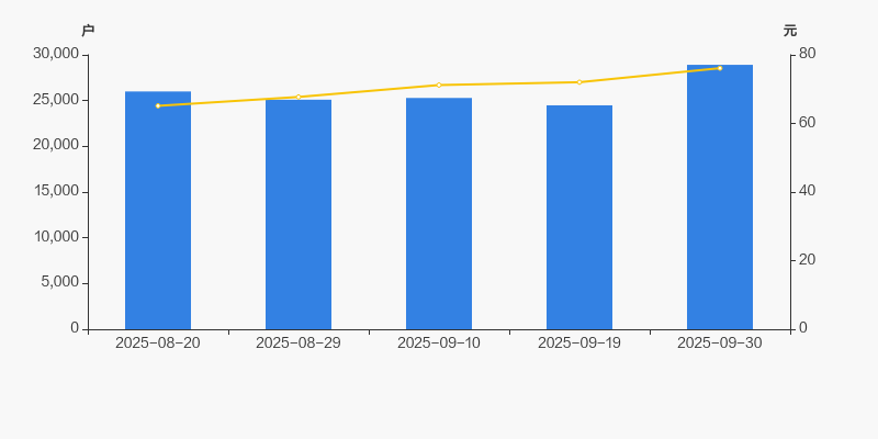 截至2025年9月30日,公司最新总股本为2.95亿股,其中流通股本为2.89亿股。户均持有流通股数量由上期的1.18万股下降至9995股,户均流通市值76.08万元。