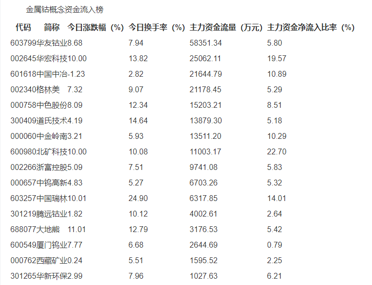 按目前腾哥涨停需要的资金大概1.5亿今日金属钴资金流入方面请见图!@华友钴业华友