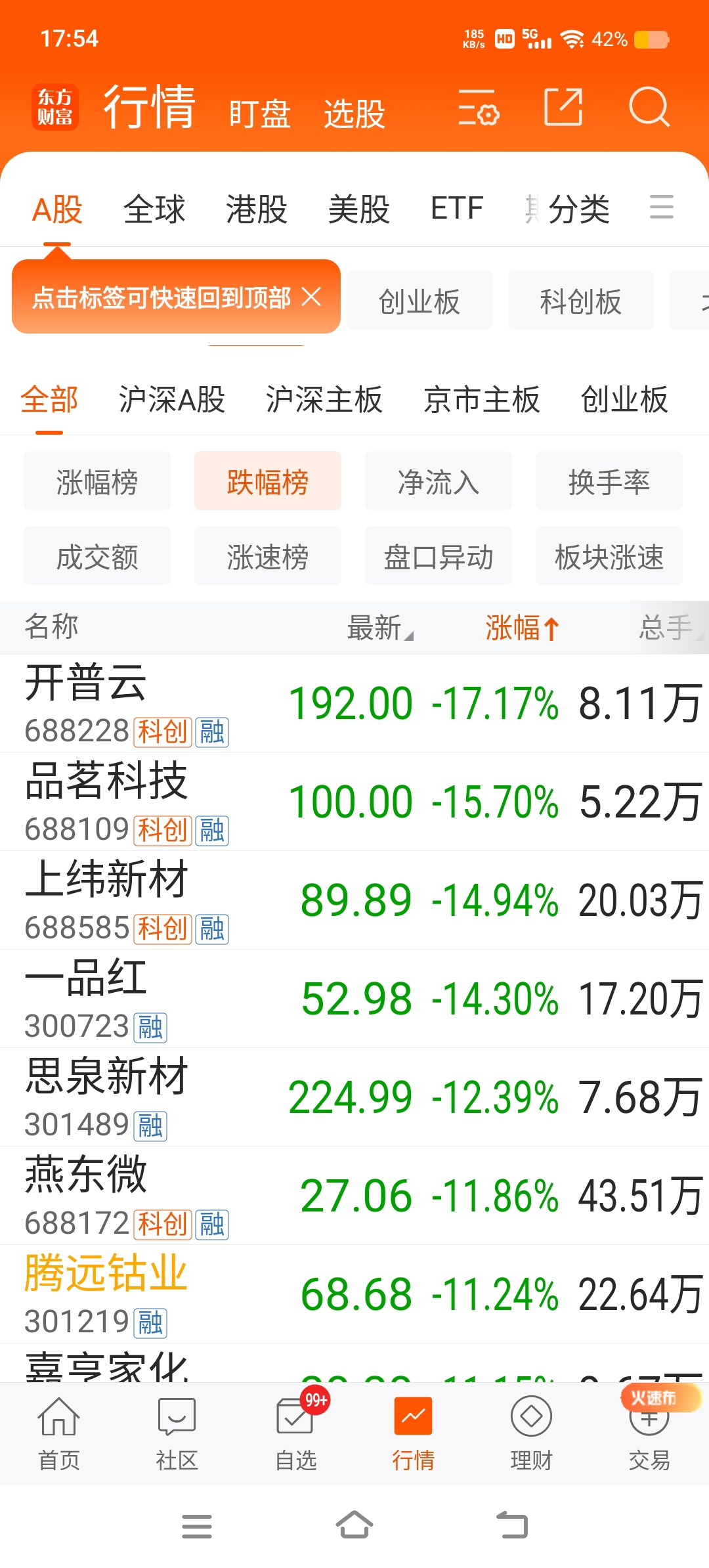 整个大A跌幅榜排名倒数第七,厉害了吧,应该是庄家借势打压,也说明庄家控盘能力强,