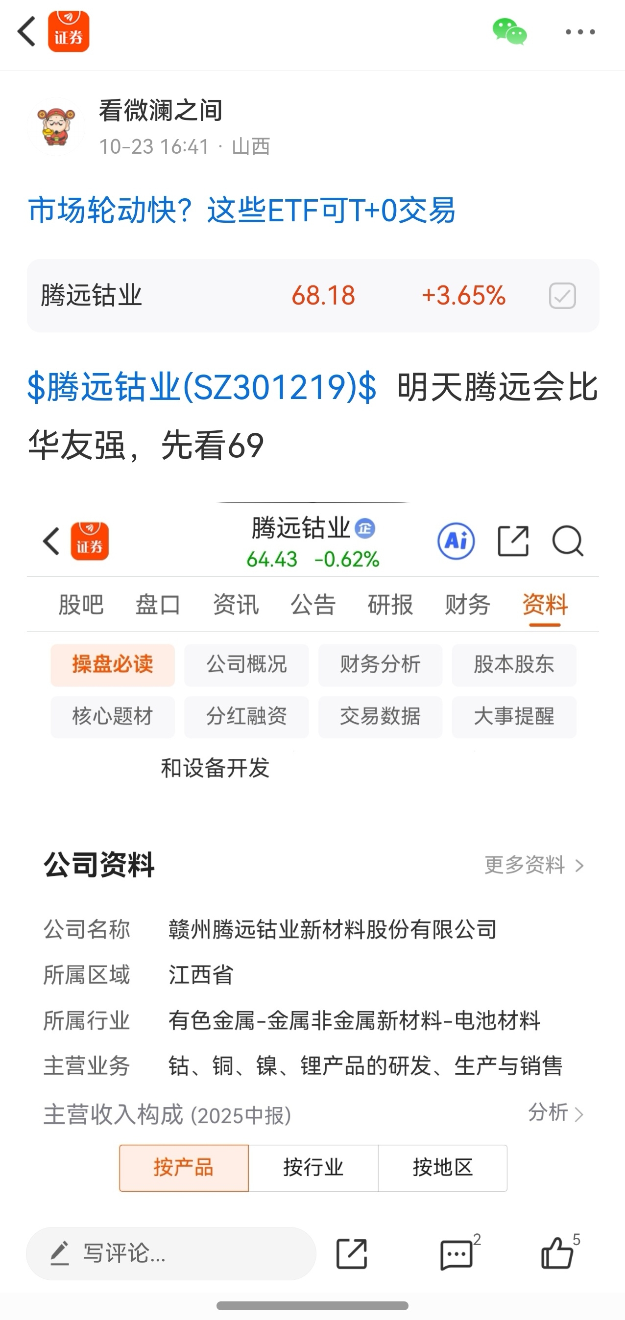 $腾远钴业(SZ301219)$ 63的时候不买这个位置往进追,风险就大了,先撤一步留下的各位发财