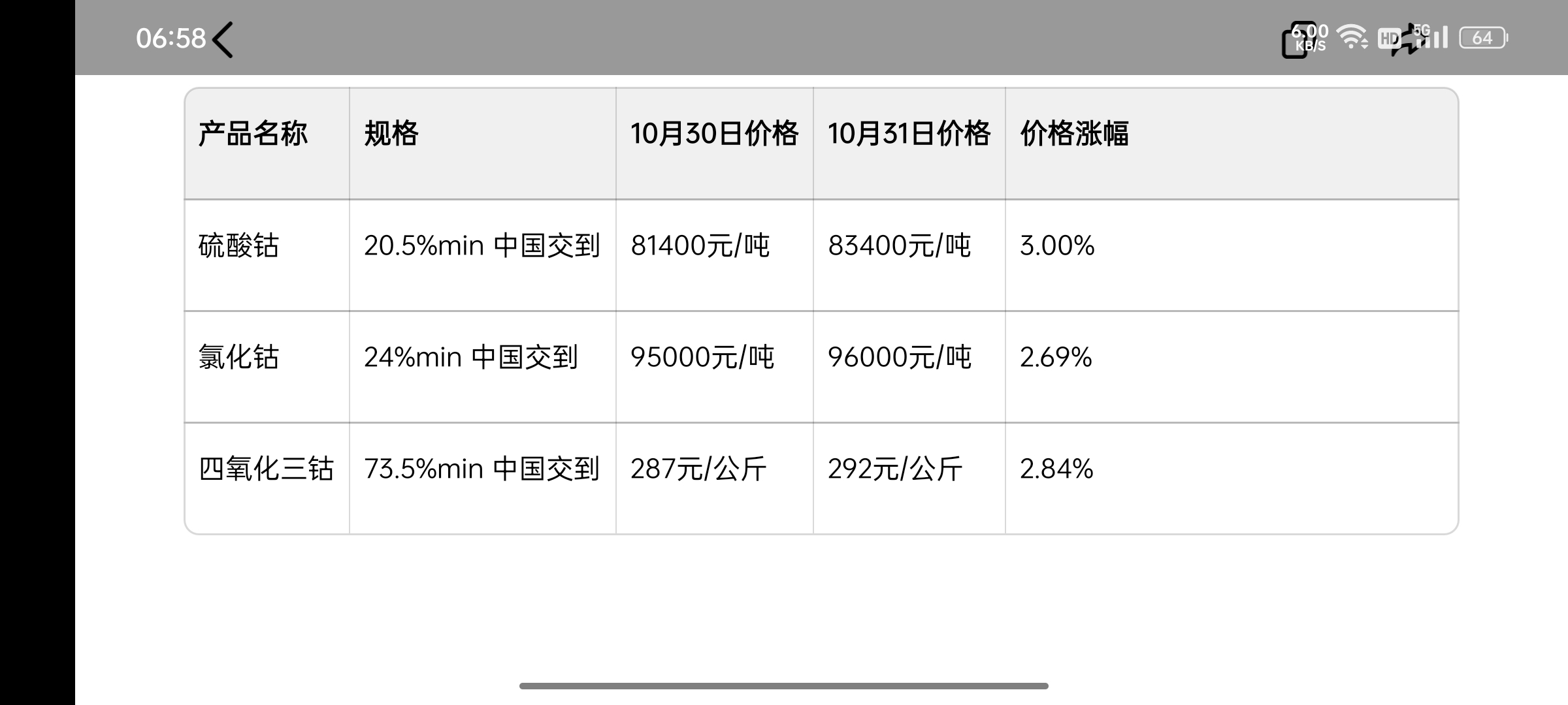 钴价格走势