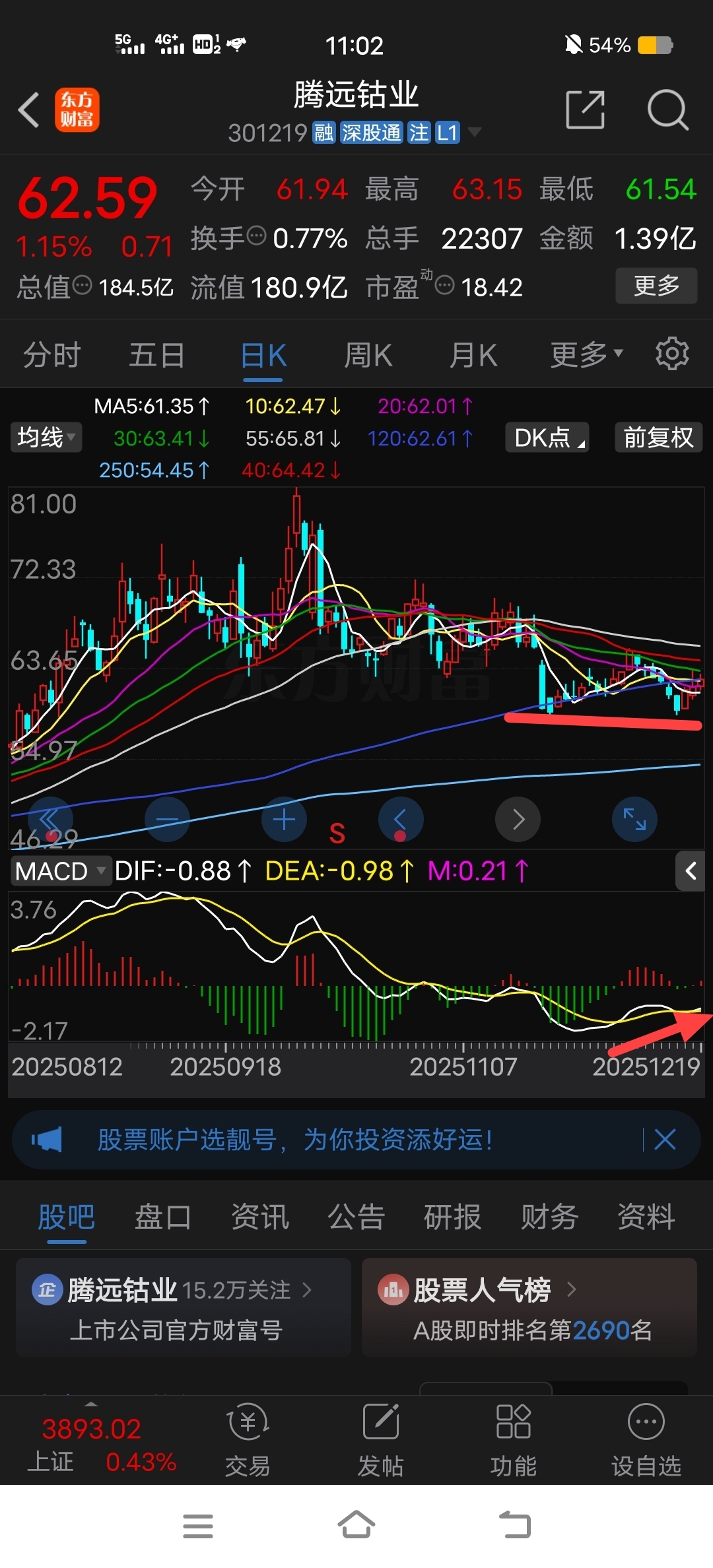 $腾远钴业(SZ301219)$ 指标macd底背离。下面就看量。有点意思哦