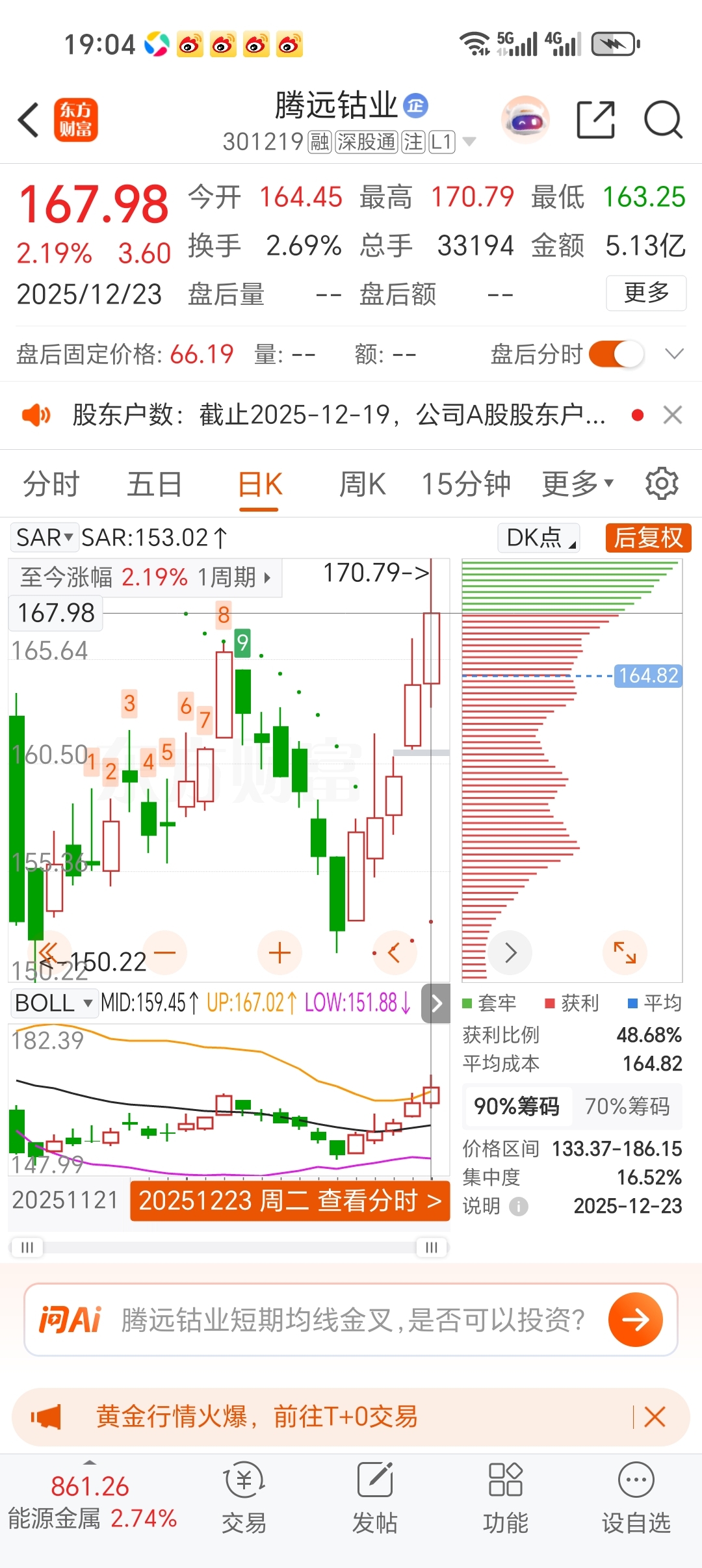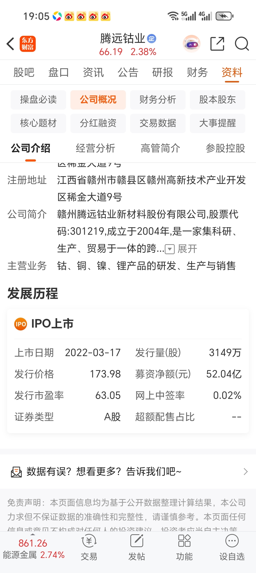 2022年发行价173元。,,,复权最高230元,,,,目前又回落至167元,继续持股待涨,,,,,(净资产31元)每股2.5元前三季度,,,轻松加愉快持(腾远钴业)