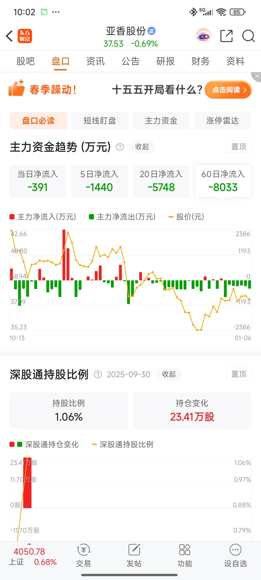 $亚香股份(SZ301220)$ 看看60天的资金,密集的留流出,真是太牛逼了,主力这是走光了吗