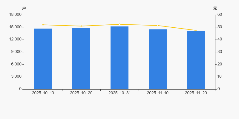 2025年10月10日至今,公司股东户数有所下降,区间跌幅为3.42%。2025年10月10日至2025年11月20日区间股价下降8.62%。