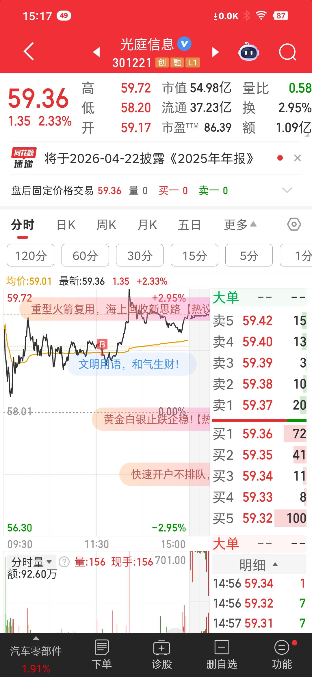 $光庭信息(SZ301221)$ 有低位那能没有我,面对如此之势,不猜测,明能过二十天线吗?不知,但总得又点念想,所以不T不减,明再定