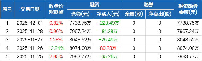 浙江恒威:连续3日融资净偿还累计335.25万元(12-01)