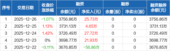 中荣股份:连续4日融资净买入累计80.02万元(12-26)