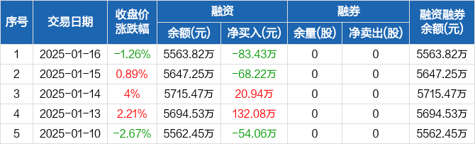 恒勃股份:融资净偿还83.43万元,融资余额5563.82万元(01-16)