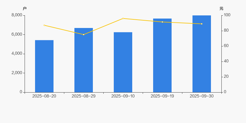 2025年8月20日至今,公司股东户数显著增长,区间涨幅为47.46%。2025年8月20日至2025年9月30日区间股价上涨2.11%。