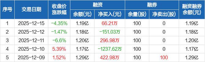 恒勃股份:融资净买入66.21万元,融资余额1.19亿元(12-15)