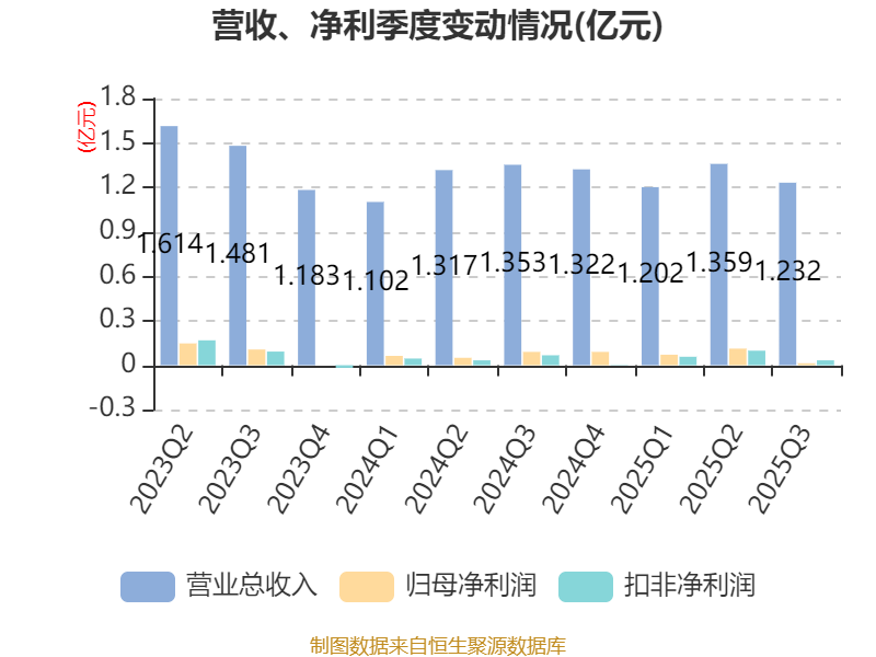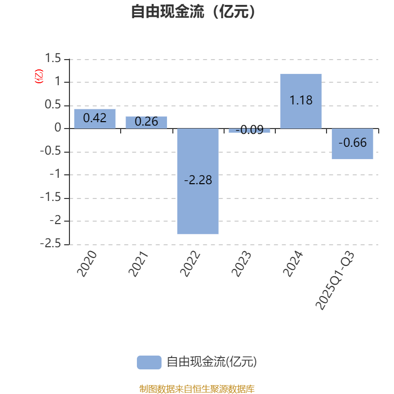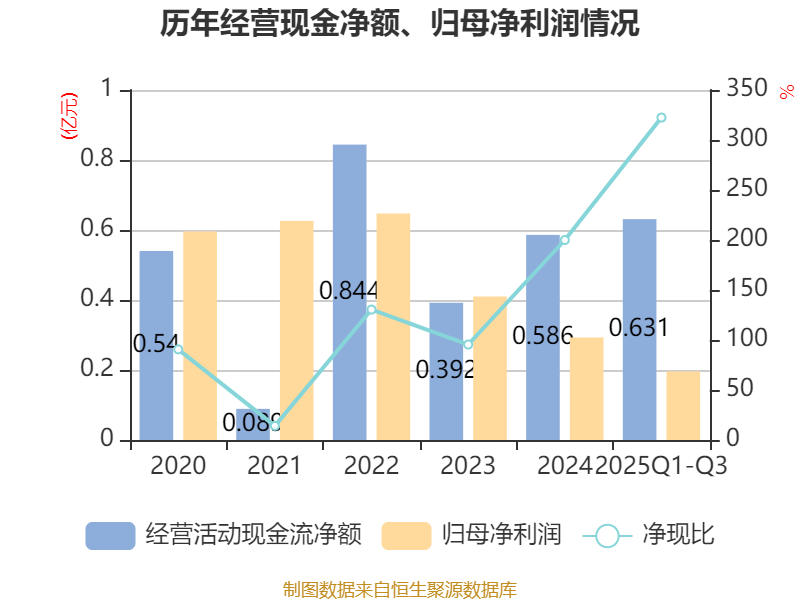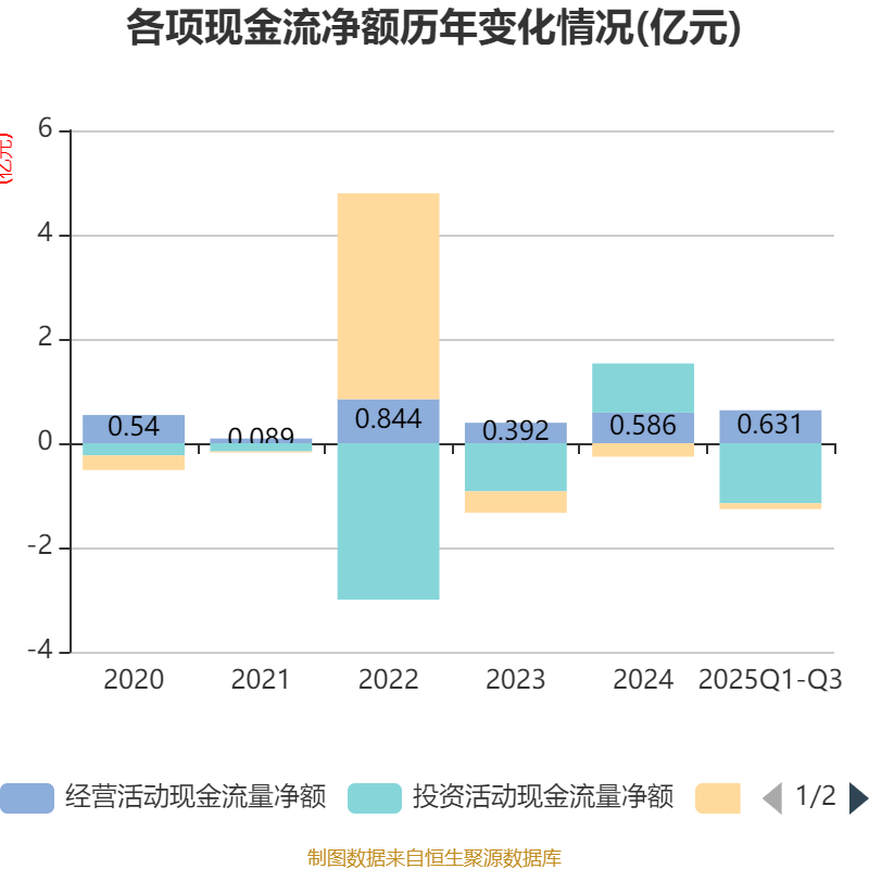 2025年前三季度,公司经营活动现金流净额为6313.95万元,同比增长123.94%;筹资活动现金流净额-1106.07万元,同比增加1448.5万元;投资活动现金流净额-1.15亿元,上年同期为-2964.93万元。