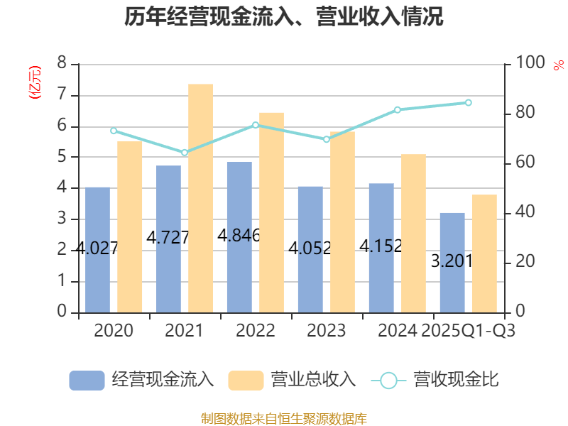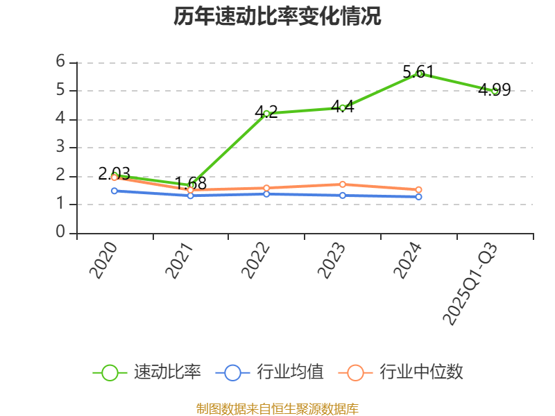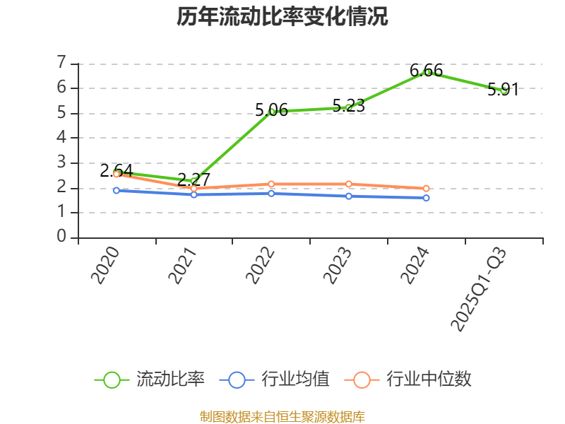 2025年前三季度,公司流动比率为5.91,速动比率为4.99。