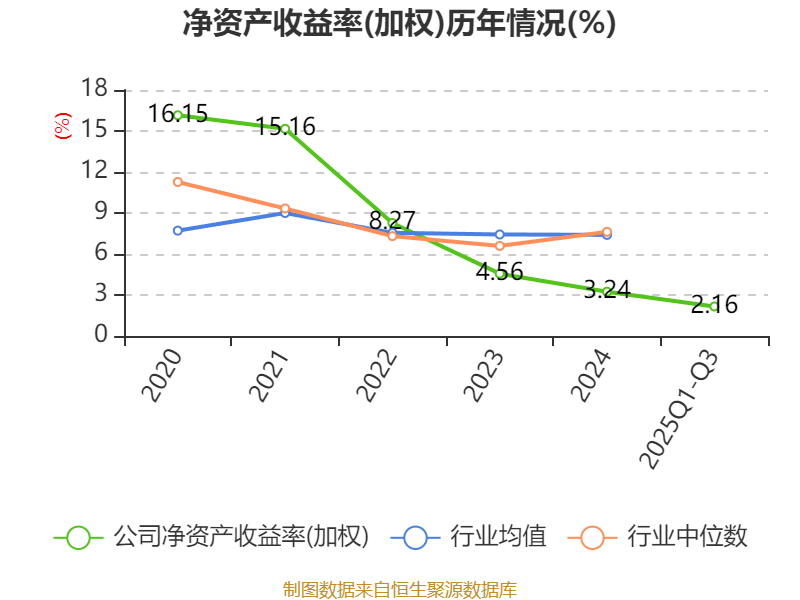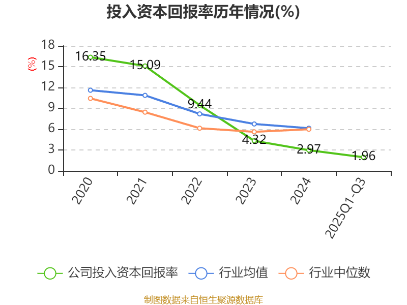 盈利能力方面, 2025年前三季度公司加权平均净资产收益率为2.16%,同比下降0.09个百分点。公司2025年前三季度投入资本回报率为1.96%,较上年同期下降0.17个百分点。