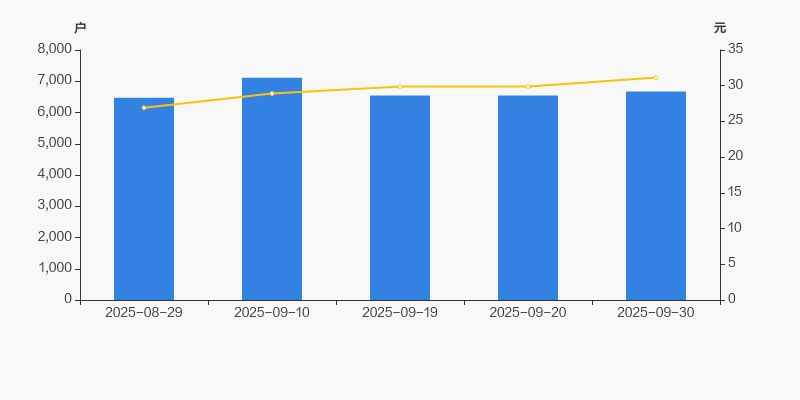 2025年8月29日至今,公司股东户数有所增长,区间涨幅为3.09%。2025年8月29日至2025年9月30日区间股价上涨15.72%。